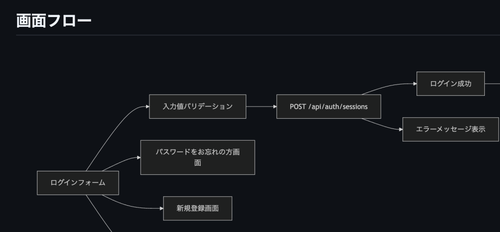- 画面フローと API フローの Mermaid 図