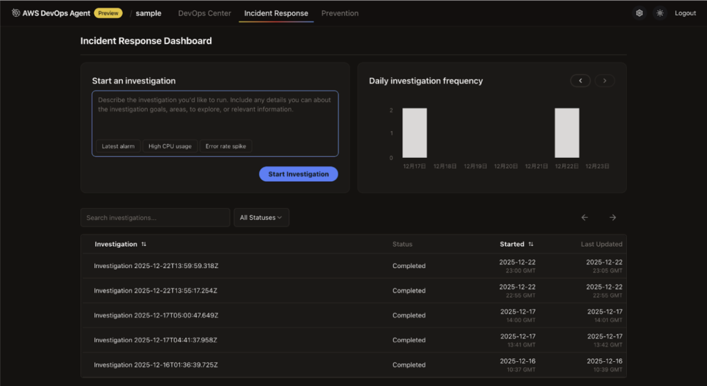 AWS DevOps Agent は、インシデントの検出・解析・解決支援を自律的に行う AI エージェントで、AWS Frontier Agentsの1つです。