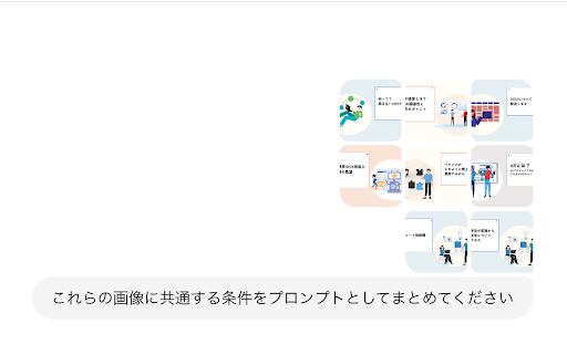 1. 目標となるような雰囲気の複数枚の画像をアップロードし、それらの画像の共通点を聞きます。
