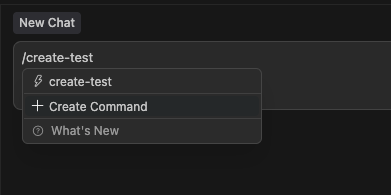 以下の画像のように、チャット入力欄で「/」を付けるだけで呼び出せる再利用可能なワークフローを作成する機能で、公式ではコードレビューやプルリクエストの作成といった例が紹介されています。