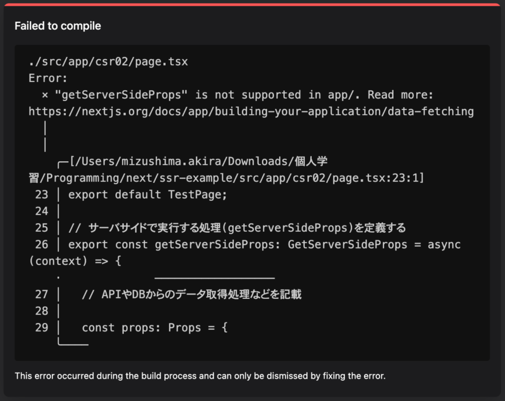 しかしNext13以降のApp Routerを使用した場合のアプリケーションでは同じコードを書くとis not supportedのエラーになります。