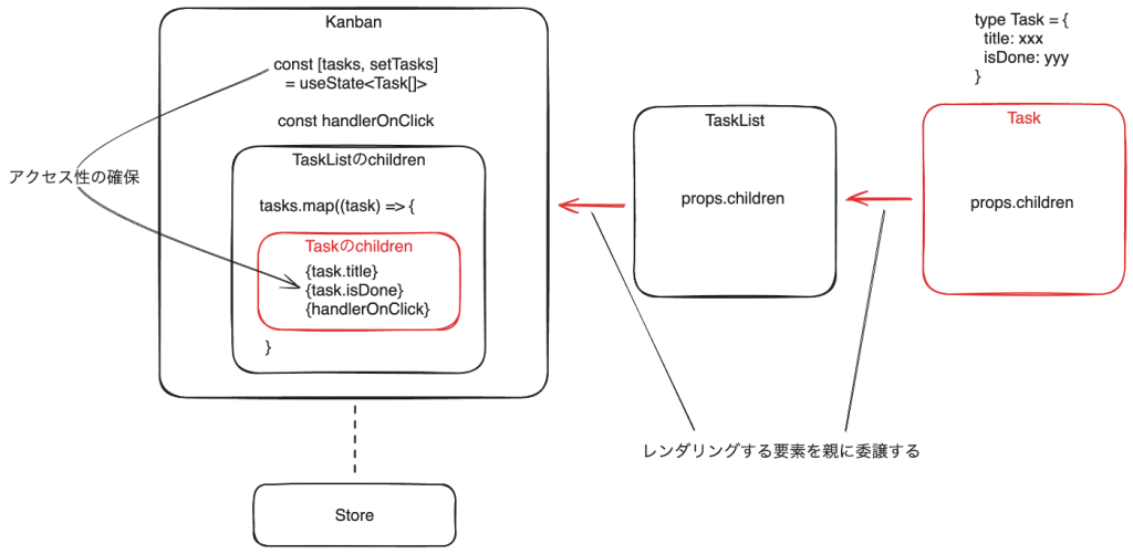 TaskListでは不必要なpropsが渡っている - 変数が増えた場合、中間層・下層のコンポーネントに対してpropsのメンテナンスが困難になる