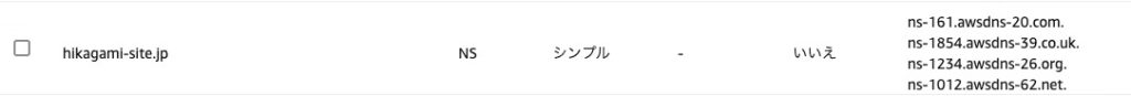 レコードの中に、”値/トラフィックのルーティング先”がns-から始まる4行のレコードがあるので、この値をメモします。