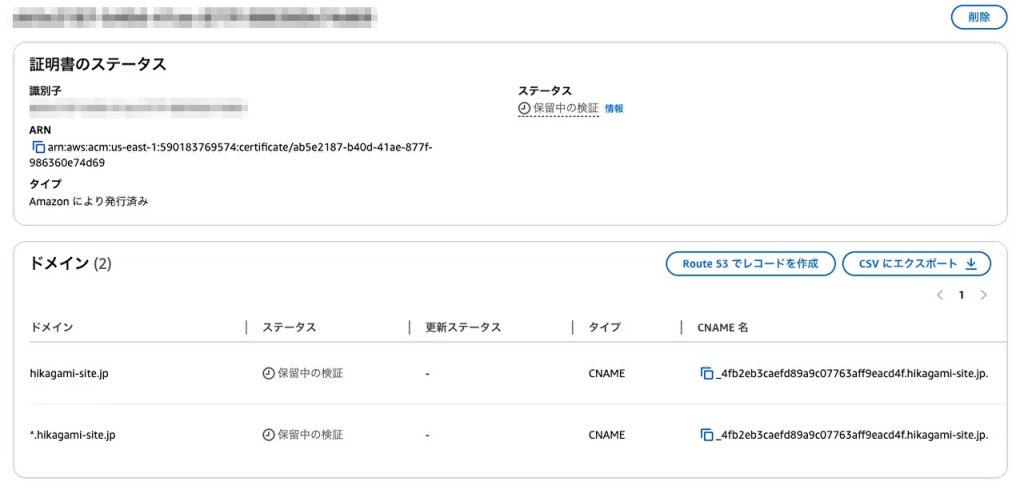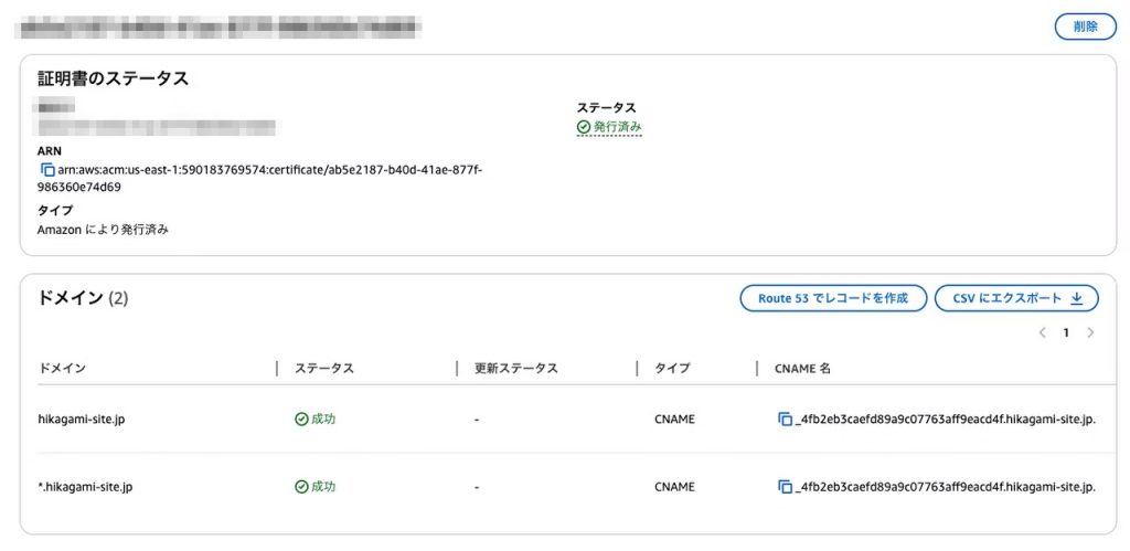 作成できたら、「4. ACMでSSL証明書を取得する」は完了です!