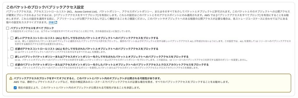 また、ウェブサイトとして公開するので「パブリックブロックアクセスを全てブロック」をoffにします。