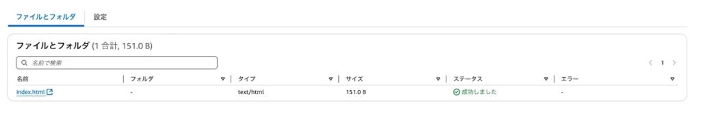 正常に更新できたら、「オブジェクト」タブに移動し、index.htmlをバケットに格納します。