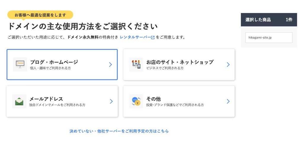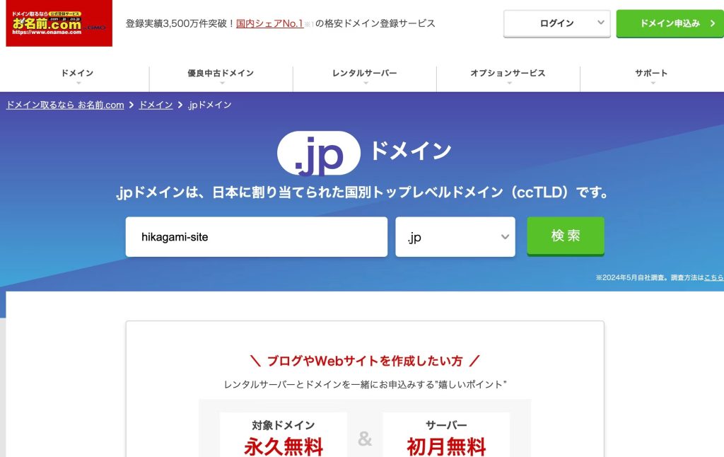 今回は「hikagami-site.jp」というドメインを取得しました。