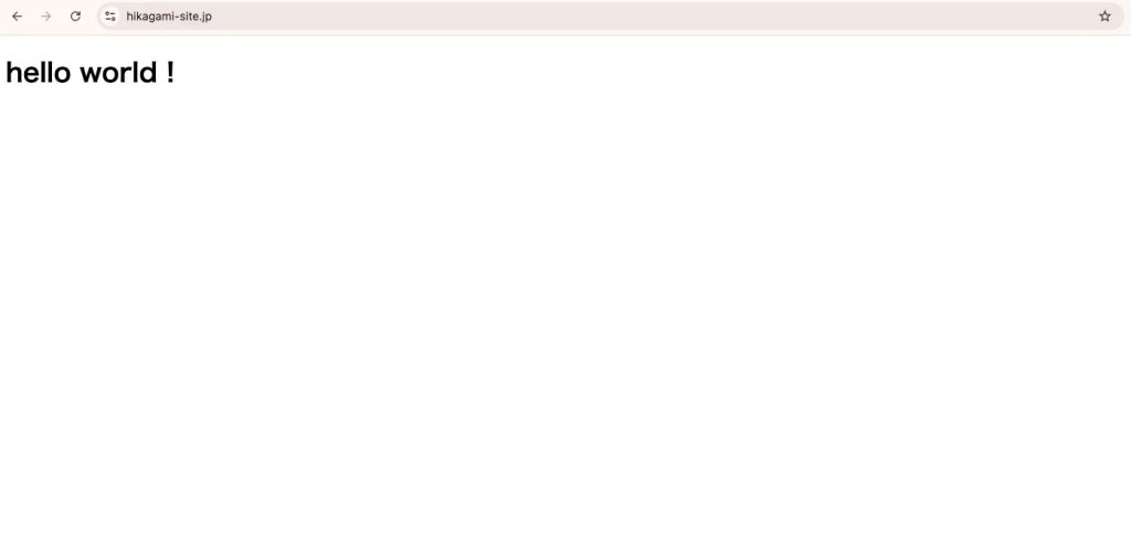 サブドメインである「www.hikagami-site.jp」を入力しても同じ画面が表示されます。(ルートドメインにルーティングするようにしているため)