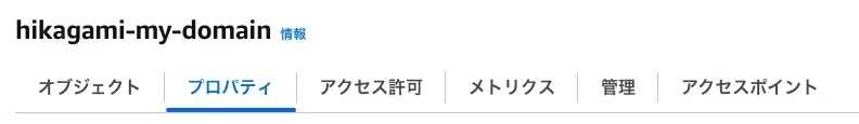 正常にバケットが作成されたら、汎用バケット一覧から先ほど作成したバケットを選択して「プロパティ」タブを選択します。