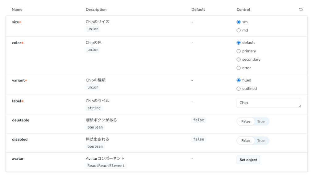 また、Storybookでドキュメント化するポイントは、